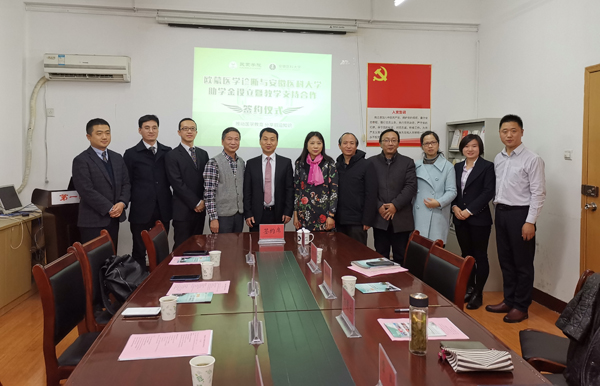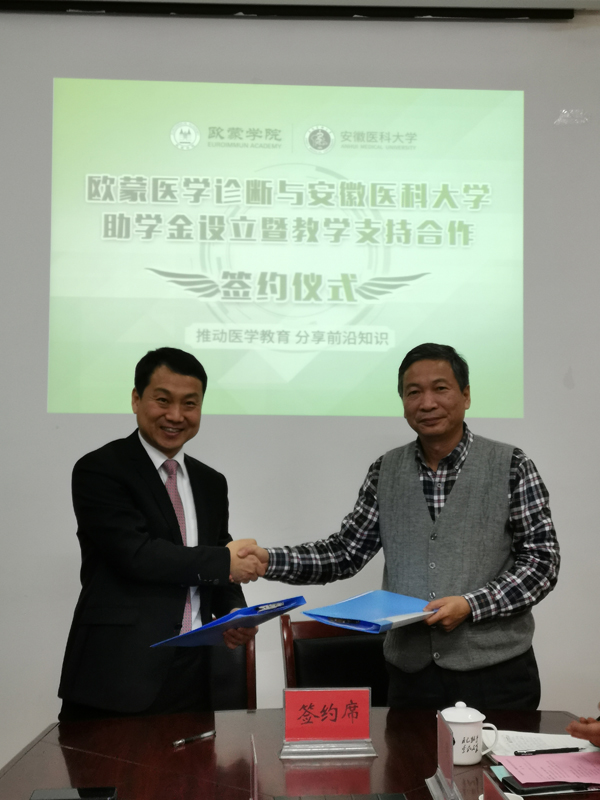 2018年12月19日,歐蒙亞太集團總裁李川先生一行走進(jìn)安徽醫(yī)科大學(xué),筑夢學(xué)子,與安徽醫(yī)科大學(xué)簽署“歐蒙助學(xué)金”暨教學(xué)支持合作協(xié)議。安醫(yī)大教育基金會秘書長許柏松,校學(xué)生處副處長吳熱生,第一臨床醫(yī)學(xué)院黨委副書記、學(xué)生黨總支書記楊秀蘭,檢驗系主任徐元宏,學(xué)生黨總支副書記薛磊等相關(guān)負(fù)責(zé)人出席儀式。