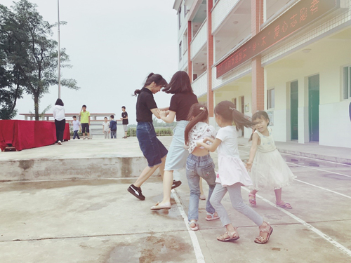 志愿者課堂結束后,一場別出心裁的趣味運動會點燃了在場所有人的熱情,志愿者與孩子們融為一體,努力為自己團隊爭取勝利,現場高潮不斷,笑聲不絕于耳,吶喊聲、喝彩聲回蕩在山谷、田野間。