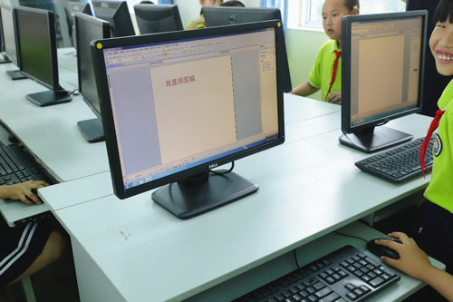 看到自己的名字第一次出現在電腦上,孩子們露出激動的笑容