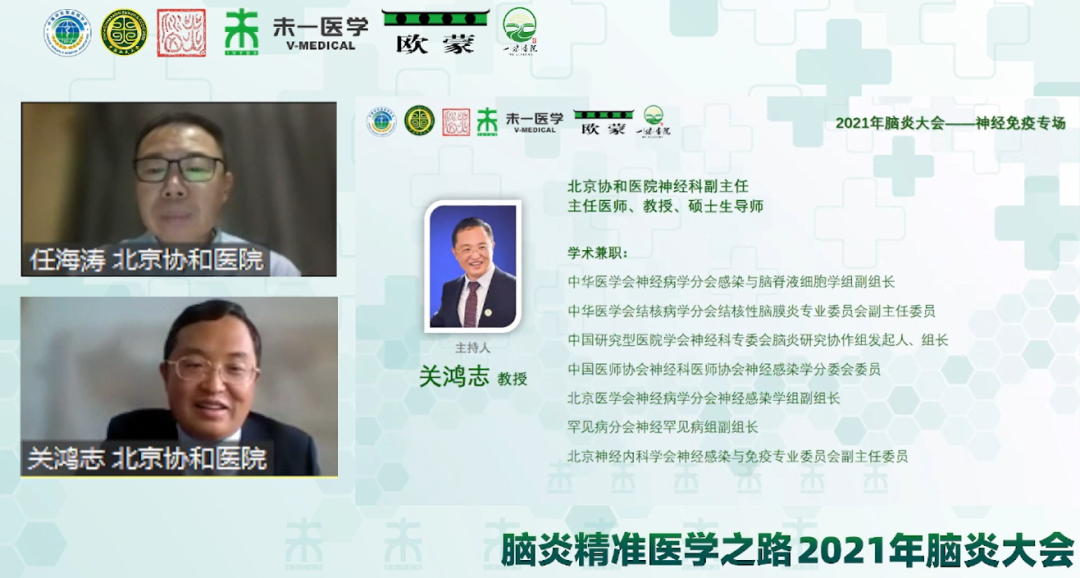 2021年11月21日第三屆腦炎大會-神經免疫專場以線上的形式成功召開,會議由中國研究型醫(yī)院學會神經科學專委會主辦,北京協(xié)和醫(yī)院神經科、中國科學院承辦,未一醫(yī)學檢驗實驗室、歐蒙醫(yī)學診斷(中國)有限公司、一味書院協(xié)辦。本屆腦炎大會延續(xù)“腦炎精準醫(yī)學之路”為主題,就人工智能診斷在神經系統(tǒng)疾病中的應用、新型自免腦炎抗體研發(fā)等熱點問題進行深入交流與探討。來自全國的神經領域和其他相關專業(yè)的醫(yī)學同仁線上齊聚,共享學術盛宴,共計2.1萬人次觀看了本次會議直播。