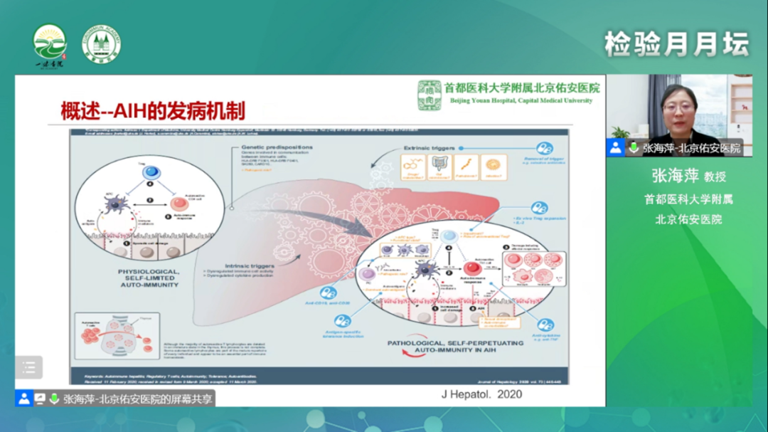 2022年12月24日(周六),一味書院主辦的【檢驗月月壇】系列會議第8期“自身免疫性肝病實驗診斷進展”全國直播會在線上如期召開。月月壇主辦方一味書院執(zhí)行院長、發(fā)起人之一李川先生為本期月月壇致辭,首都醫(yī)科大學(xué)附屬北京佑安醫(yī)院閆惠平教授擔(dān)任大會主席,上海長征醫(yī)院仲人前教授,以及首都醫(yī)科大學(xué)附屬北京佑安醫(yī)院的張海萍教授、劉燕敏教授和黃春洋教授擔(dān)任本次會議的講者嘉賓。同時大會還邀請了首都醫(yī)科大學(xué)附屬北京天壇醫(yī)院張國軍教授、新疆維吾爾自治區(qū)人民醫(yī)院王昌敏教授、山東省立醫(yī)院的任萬華教授,以及首都醫(yī)科大學(xué)附屬北京佑安醫(yī)院的婁金麗教授和徐斌教授作為本次會議的主持人。幾位專家主要圍繞“自身免疫性肝病實驗診斷進展”進行了深入的交流和討論。