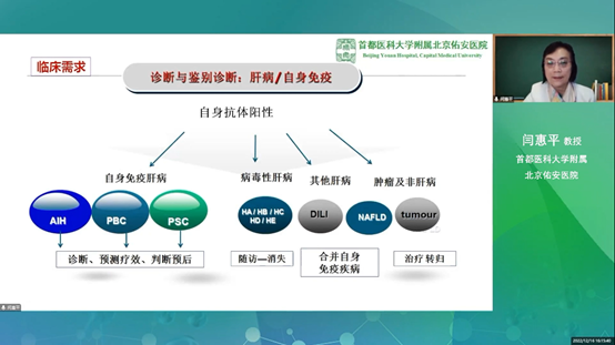 學(xué)術(shù)報告后,閆惠平教授主持討論環(huán)節(jié),并與各位專家圍繞自身免疫性肝病實驗診斷的進展相關(guān)內(nèi)容進行了深入的交流與分享。閆教授結(jié)合本次會議的主題,以及線上觀眾的提問,提出了兩個問題: