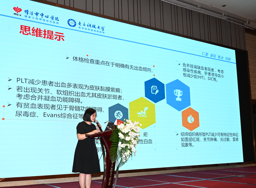 陳曦老師進(jìn)行了題為“一波三折的血小板”的病例匯報(bào),主要從病例簡(jiǎn)介、病史、相關(guān)檢查、診斷思路、治療過程等幾個(gè)大方面進(jìn)行了深入細(xì)致地剖析。陳老師通過自己多年的臨床實(shí)踐,精心篩選了一個(gè)特殊病例,與大家進(jìn)行詳細(xì)的解析,如抽絲剝繭般將雜亂無序地蛛絲馬跡,梳理成一條條思維清晰、邏輯縝密的臨床診療思路,多維度地拓寬了臨床思維。最后,指出《2020版中國(guó)成人血小板減少癥診療專家共識(shí)》里明確提出,對(duì)血小板減少癥的診療應(yīng)注重病因診斷,比如,要詳細(xì)明確具有針對(duì)性的病史詢問和檢查,仔細(xì)詢問既往史、用藥史、家族史等信息。除此之外,完善相關(guān)實(shí)驗(yàn)室檢查,尤其免疫學(xué)相關(guān)檢查對(duì)于血小板減少癥的診療也意義重大。