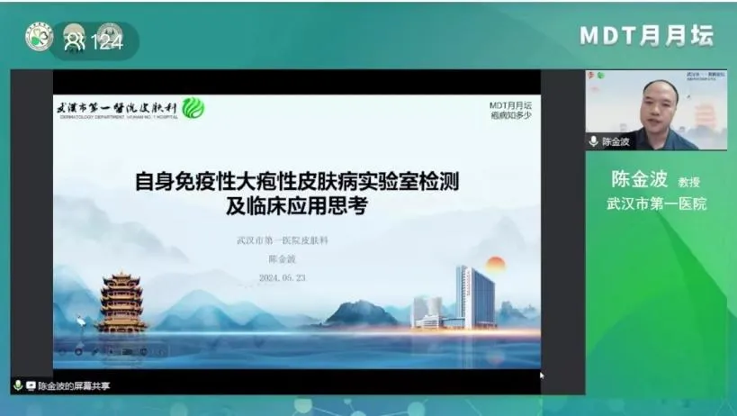 2024年5月23日,由北京健康促進會聯合一味書院及多家醫療機構主辦的《MDT月月壇(第4期)—皰病知多少》于線上成功舉行。本次論壇由武漢市第一醫院陳柳青教授擔任大會主席,武漢市第一醫院陳金波教授擔任主持及講課嘉賓,四川大學華西醫院周興麗博士作為講課嘉賓,山東第一醫科大學附屬皮膚病醫院楊寶琦擔任討論嘉賓。