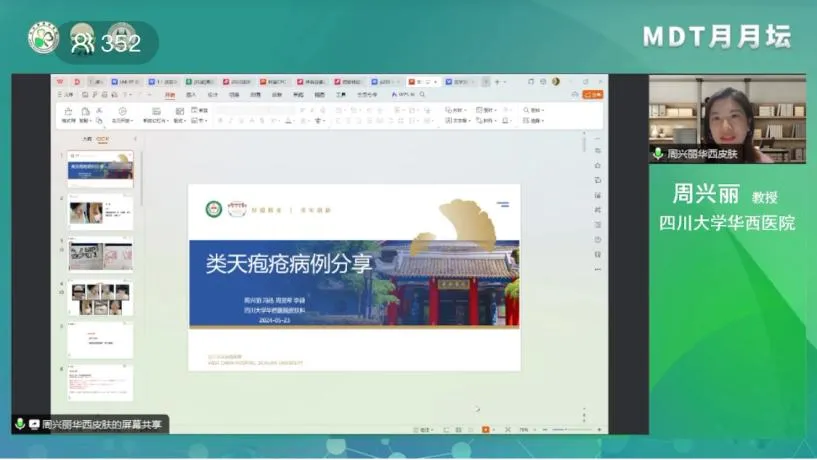 最后周博士基于類天皰瘡患者臨床表現異質性大、不同類型類天皰瘡靶抗原復雜多變,目前抗體診斷的局限性以及該疾病受累器官的多重性,提出了類天皰瘡多學科會診門診(MDT)的重要性。MDT能夠對伴有其他上皮覆蓋器官,如眼睛、咽喉、消化道等受累的類天皰瘡患者實現多學科聯合討論,達到早期、及時治療,防止重要功能器官致殘致畸發生的目的。