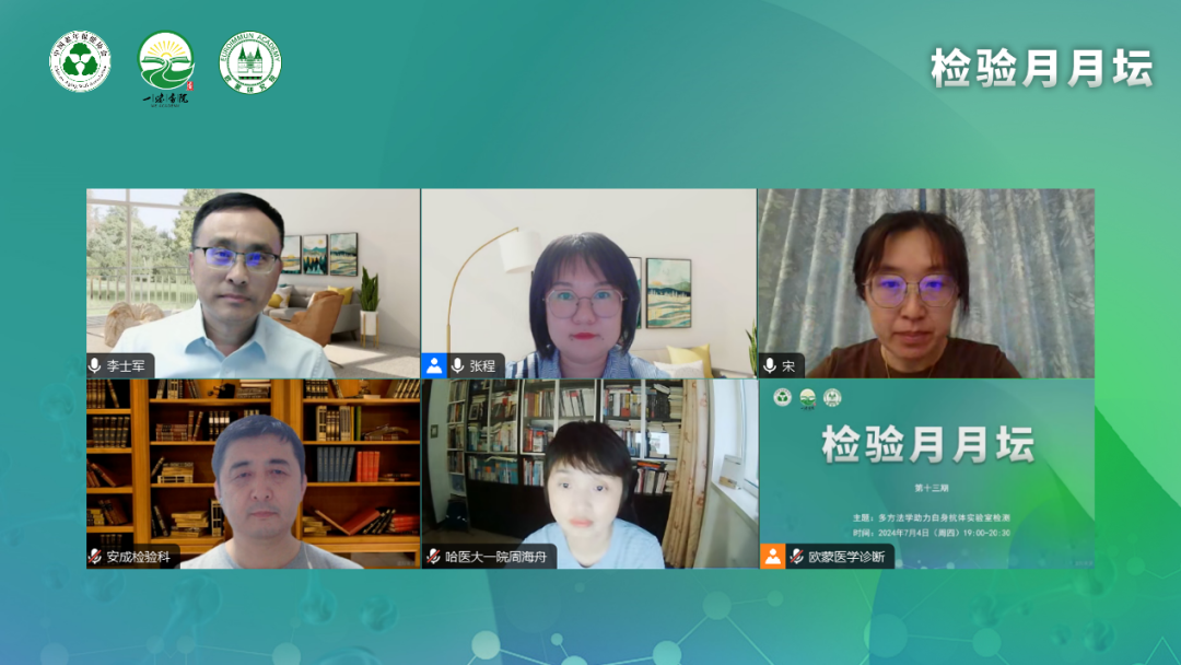 2024年7月4日(周四),中國(guó)老年保健協(xié)會(huì)、一味書(shū)院主辦的【檢驗(yàn)月月壇】系列會(huì)議第13期“多方法學(xué)助力自身抗體實(shí)驗(yàn)室檢測(cè)”全國(guó)直播會(huì)在線(xiàn)上如期召開(kāi)。大連醫(yī)科大學(xué)附屬第一醫(yī)院李士軍教授擔(dān)任大會(huì)主席并致辭,遼寧省中醫(yī)院張程教授,以及青島市婦女兒童醫(yī)院宋金蓮教授擔(dān)任本次會(huì)議的講者嘉賓。同時(shí)大會(huì)還邀請(qǐng)了中國(guó)中醫(yī)科學(xué)院廣安門(mén)醫(yī)院安成教授、哈爾濱醫(yī)科大學(xué)附屬第一醫(yī)院周海舟教授作為本次會(huì)議的討論嘉賓。幾位專(zhuān)家主要圍繞“多方法學(xué)助力自身抗體實(shí)驗(yàn)室檢測(cè)”進(jìn)行了深入的交流和討論。