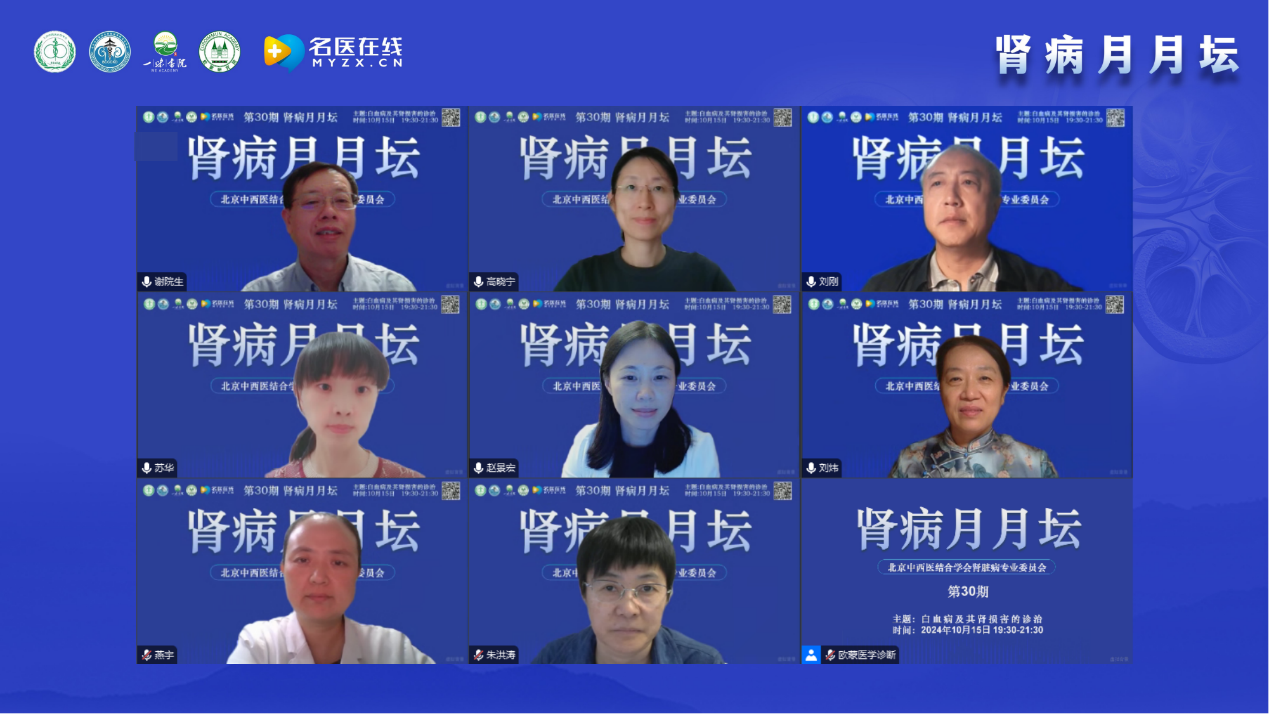 謝教授簡單介紹了“腎病月月壇”的歷史,“腎病月月壇”是在2022年5月疫情防控期間開始的線上學(xué)術(shù)交流活動(dòng),每個(gè)月第3周的周二晚上19:30-21:30開展,其形式是講座與討論相結(jié)合;每期一個(gè)主題,已完成的主題包含膜性腎病及其并發(fā)癥、風(fēng)濕性疾病腎損害、遺傳性腎病、腫瘤相關(guān)性腎損害的中西醫(yī)結(jié)合診治等,至今已經(jīng)是第三十期。
