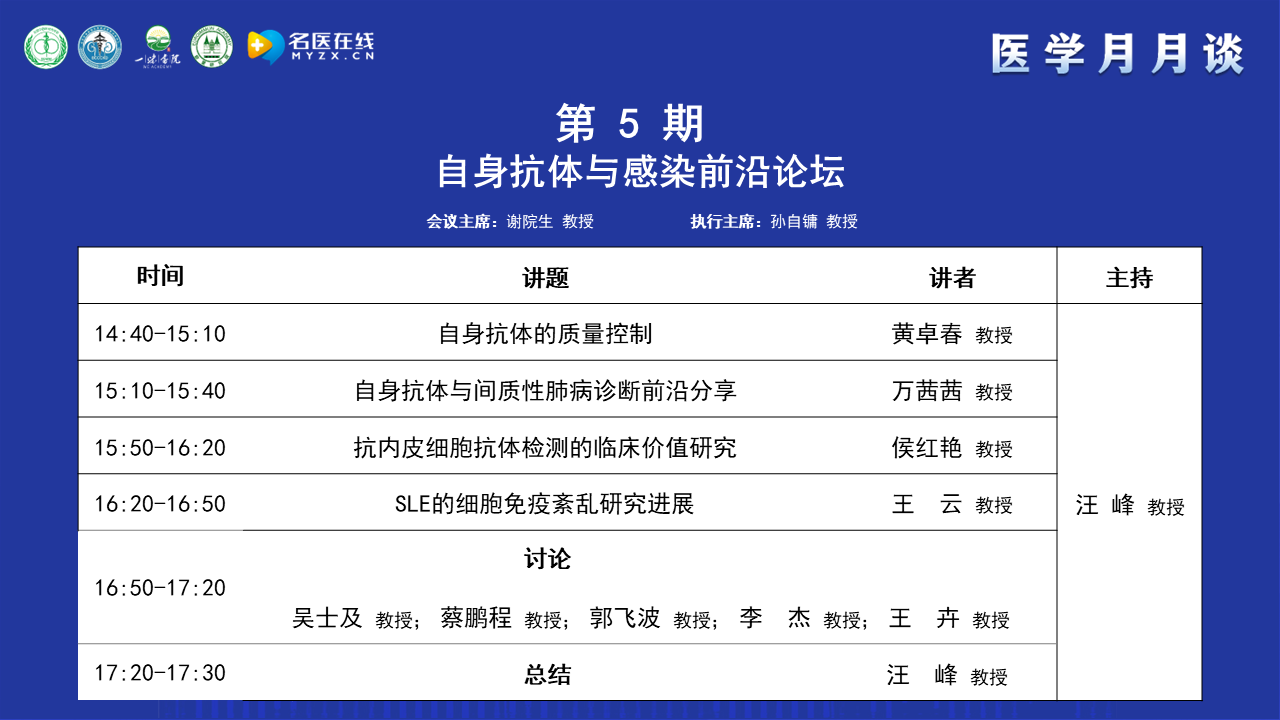 本次論壇特邀多位專家,就自身抗體、感染免疫及風(fēng)濕免疫等領(lǐng)域分享臨床與科研進(jìn)展。期待與會同仁暢所欲言、碰撞思想,共同開拓這一充滿機遇的學(xué)術(shù)疆域,為患者健康事業(yè)貢獻(xiàn)力量。預(yù)祝論壇圓滿成功!