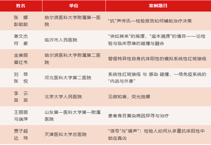 參與北區展示的18組案例涵蓋多臨床科室,案例分析深入、細節豐富,檢驗人以實驗數據為臨床決策“導航”,突顯出實驗室檢測在自身免疫性疾病診斷中的重要價值。臨床醫生通過縝密的臨床思維破解診斷迷局,檢驗與臨床協作默契,環環緊扣,生動詮釋了檢驗分析與臨床實踐的深度融合。